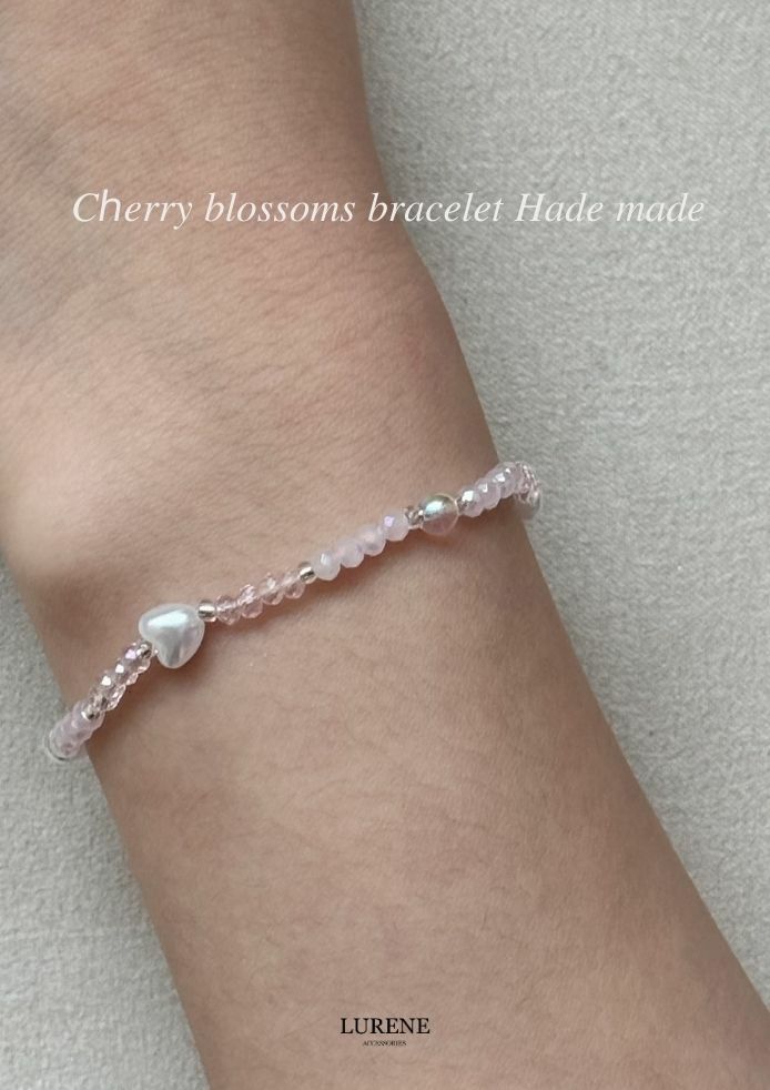 Cherry blossoms 愛心櫻花粉|Hand made 韓國工匠手工串珠手鍊