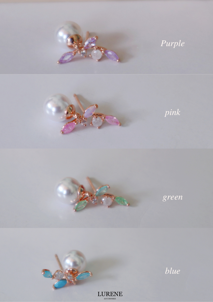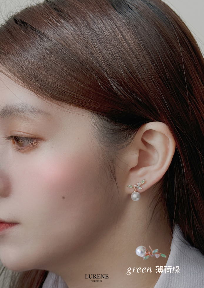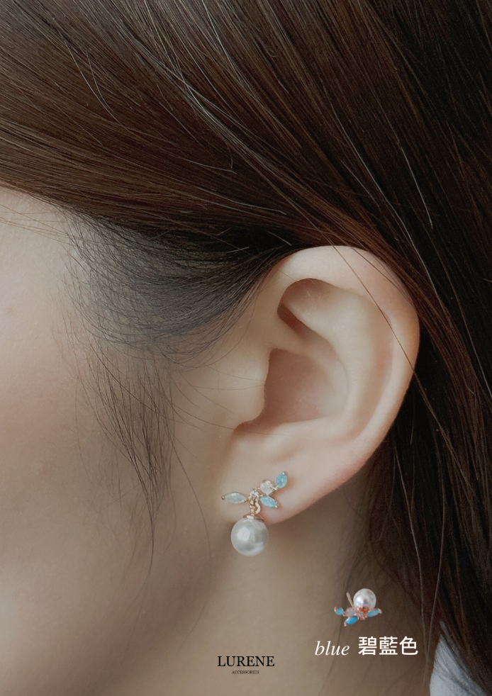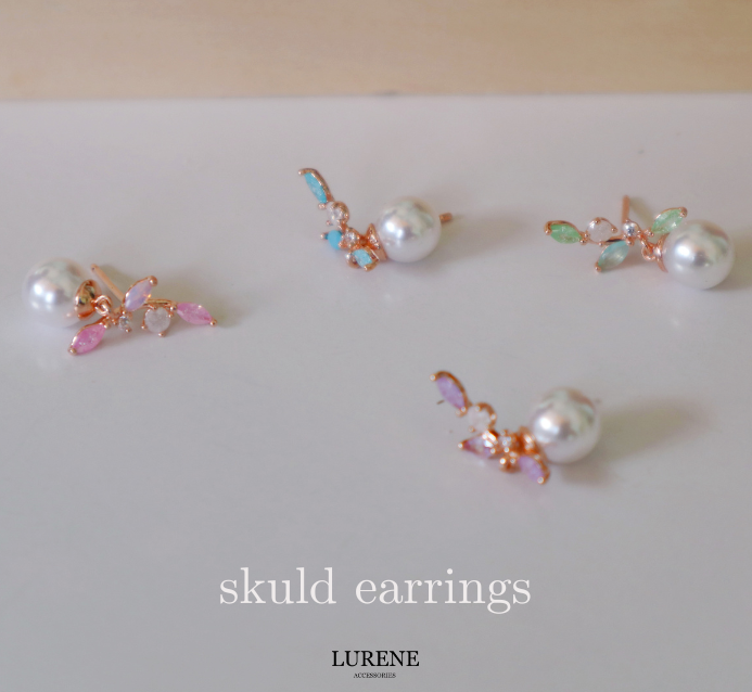醫療鋼 Skuld 春日女神枝葉珍珠耳環 4色