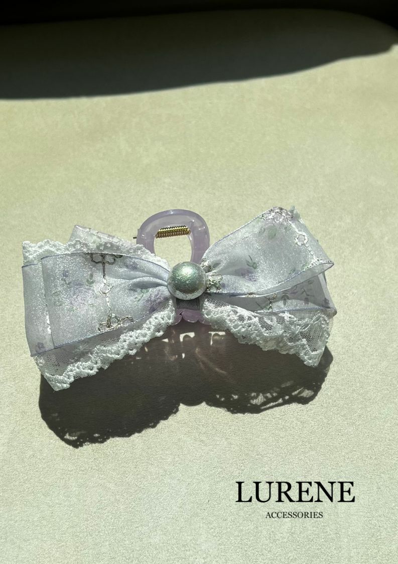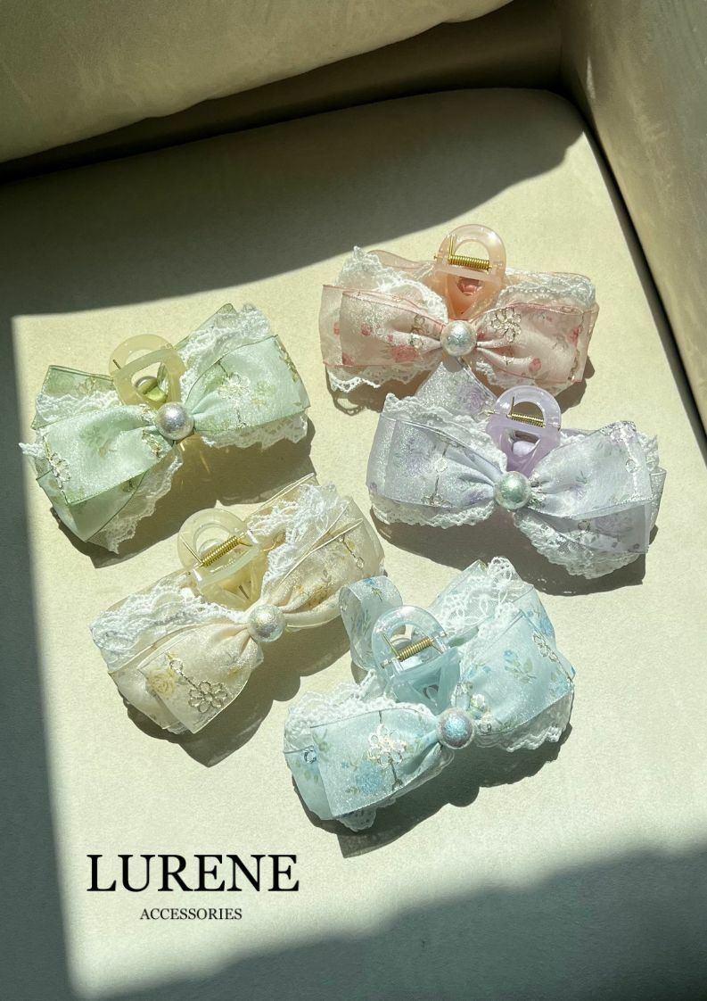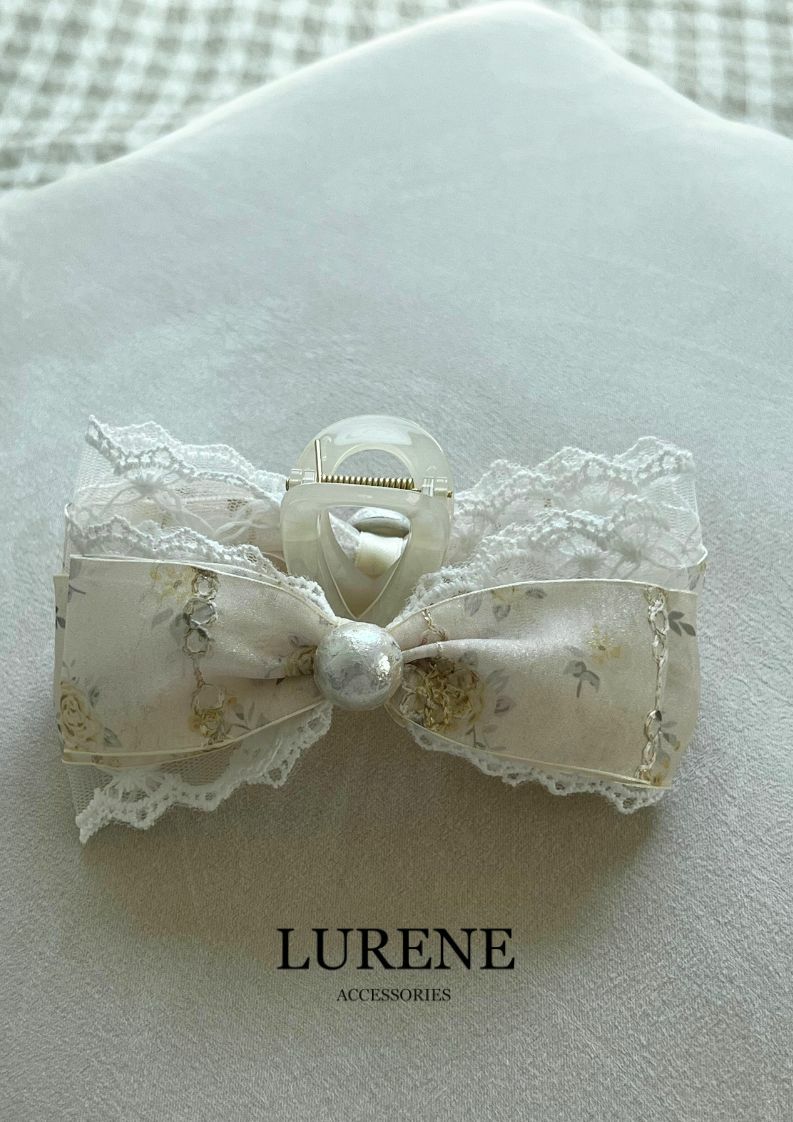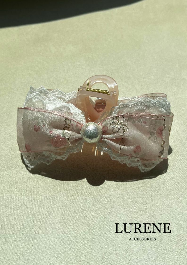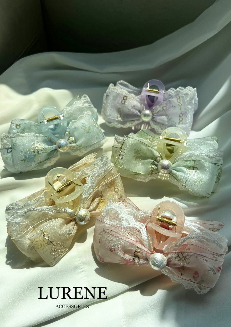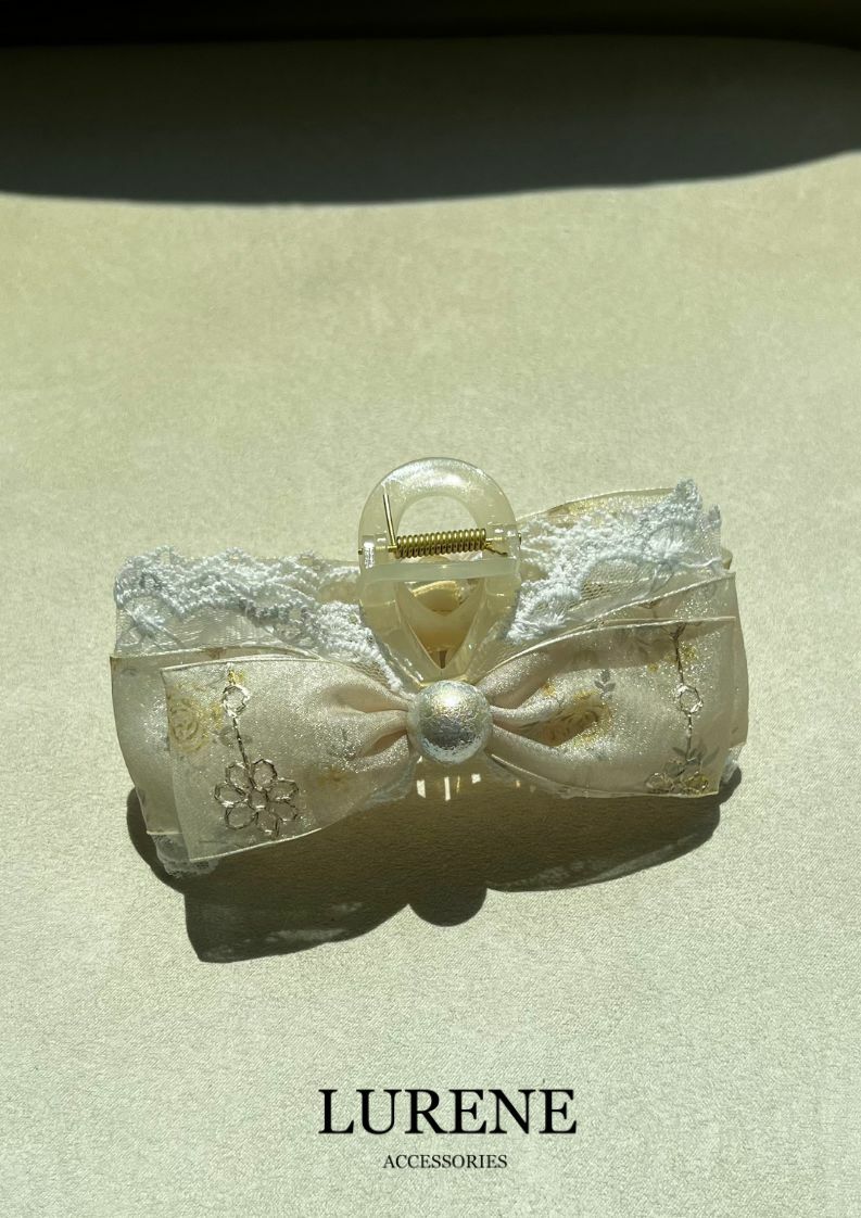 法式珍珠蕾絲精緻鯊魚夾 5色