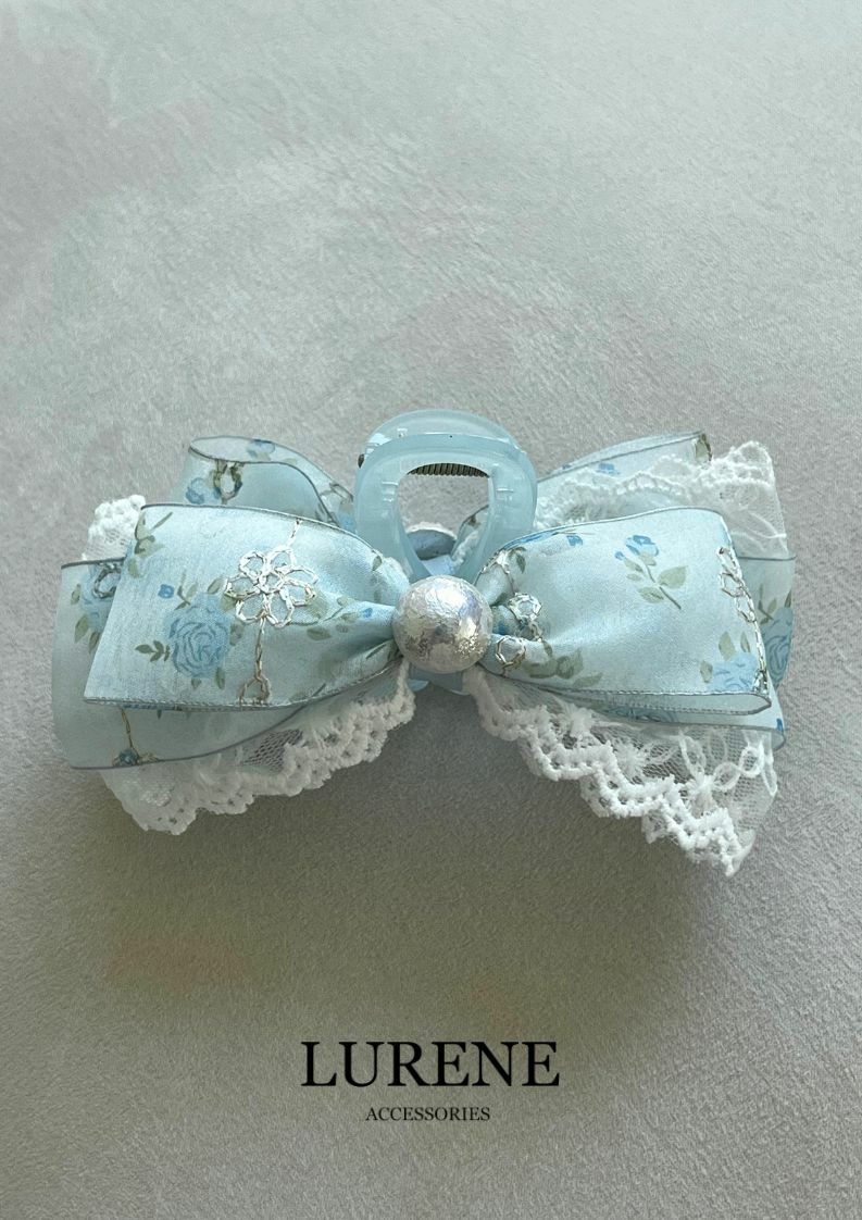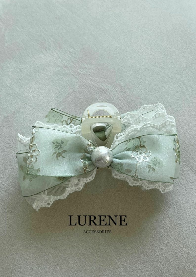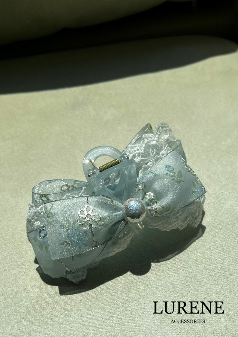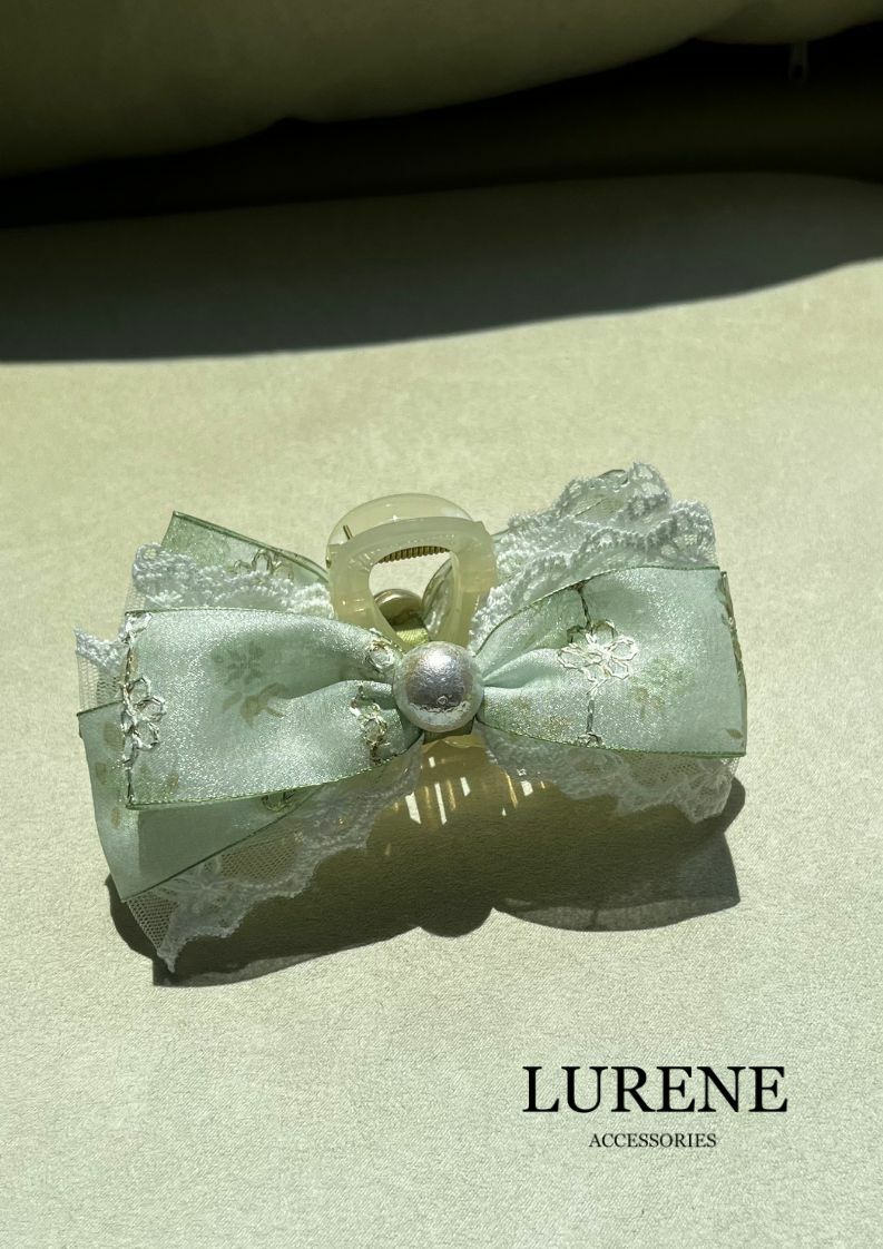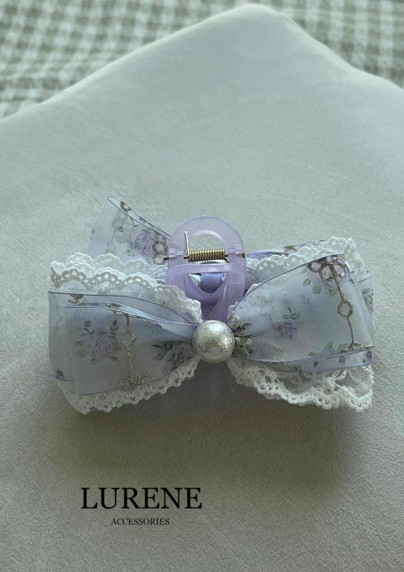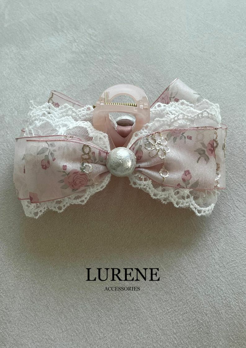法式珍珠蕾絲精緻鯊魚夾 5色