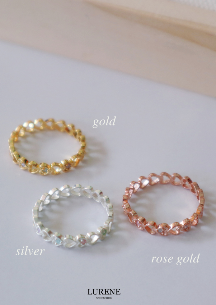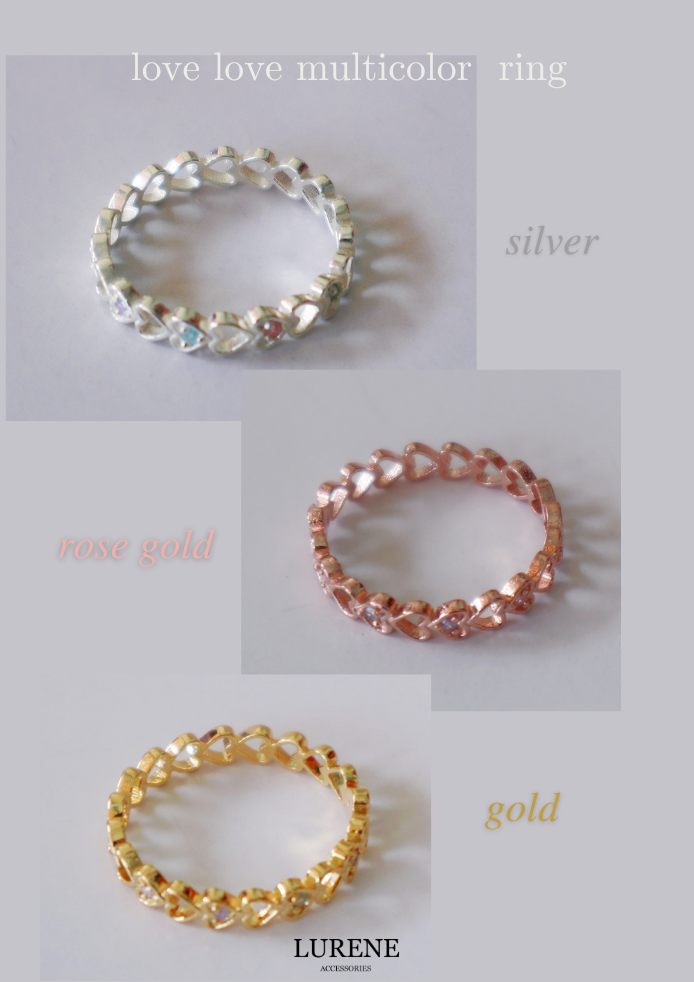 精緻愛心彩鑽 戒指 3色