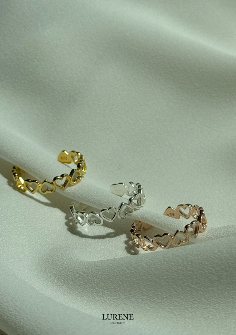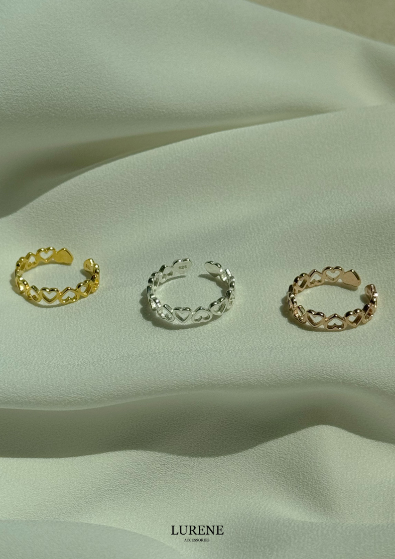 純銀 簍空顛倒愛心調節戒指 3色