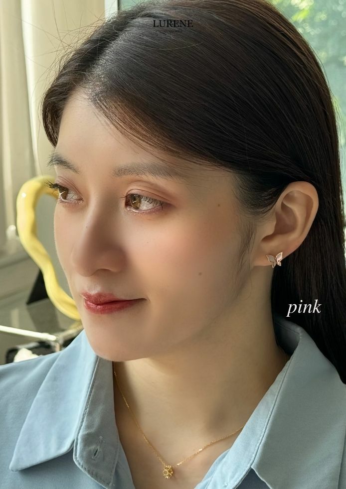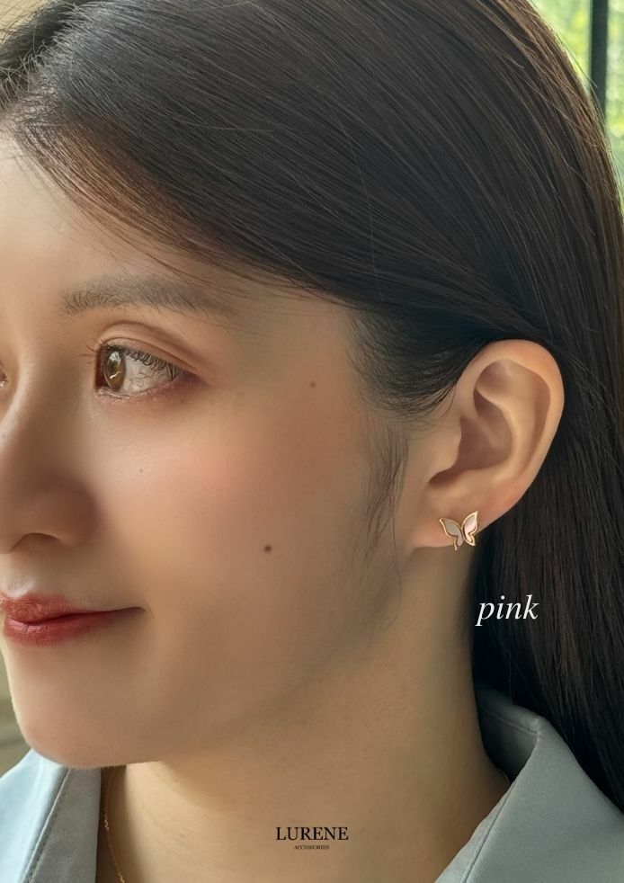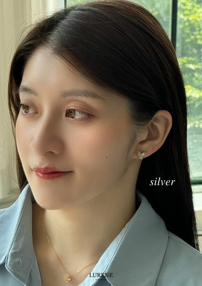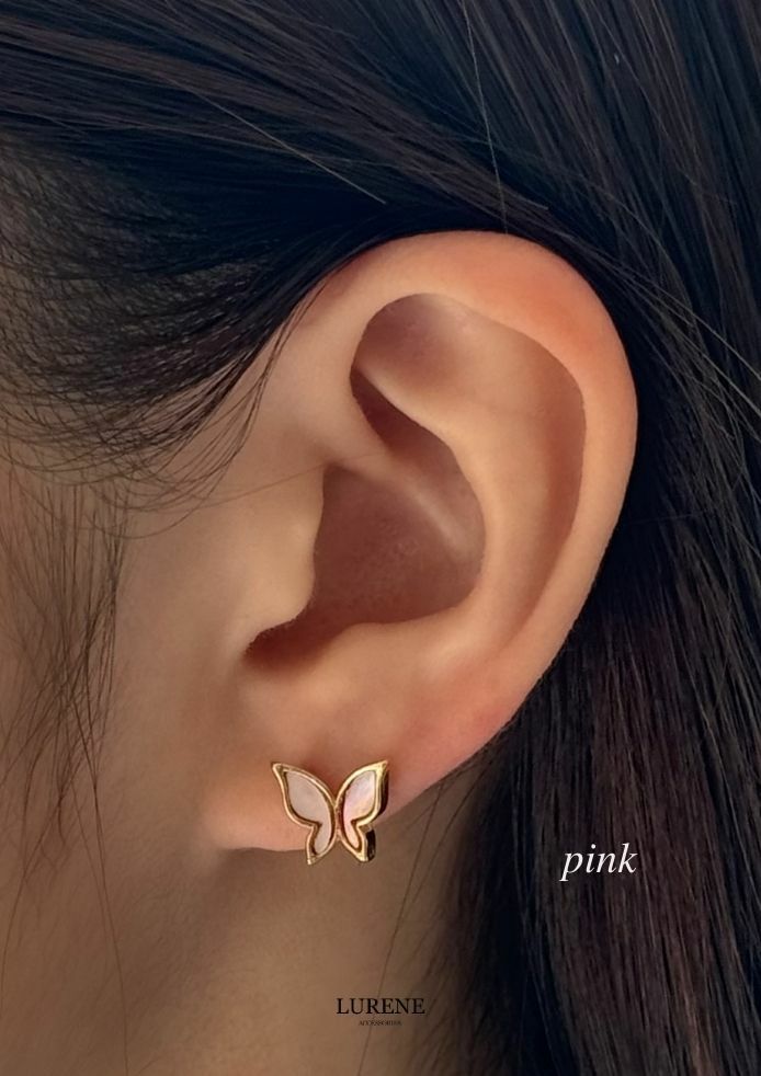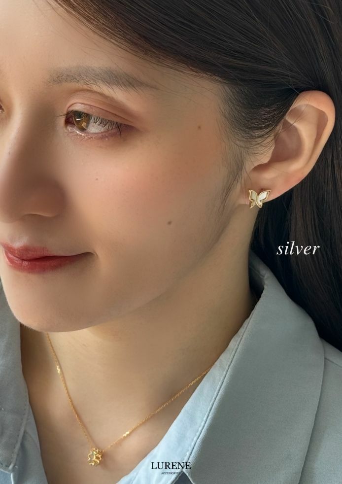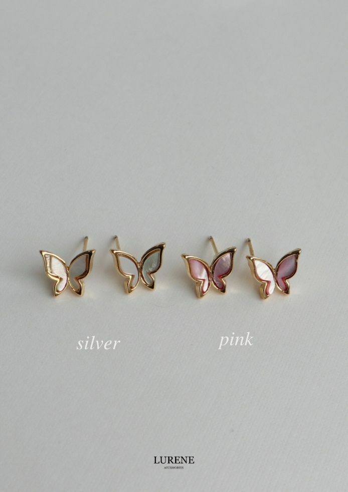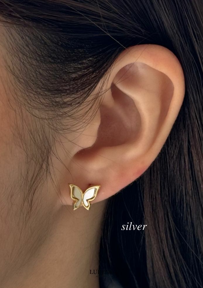 純銀銀針 蝴蝶貝殼光澤耳環 2色