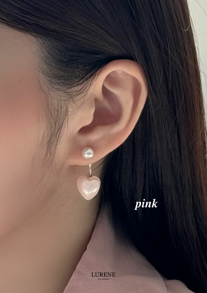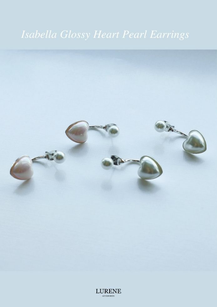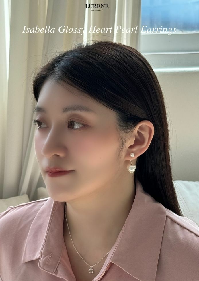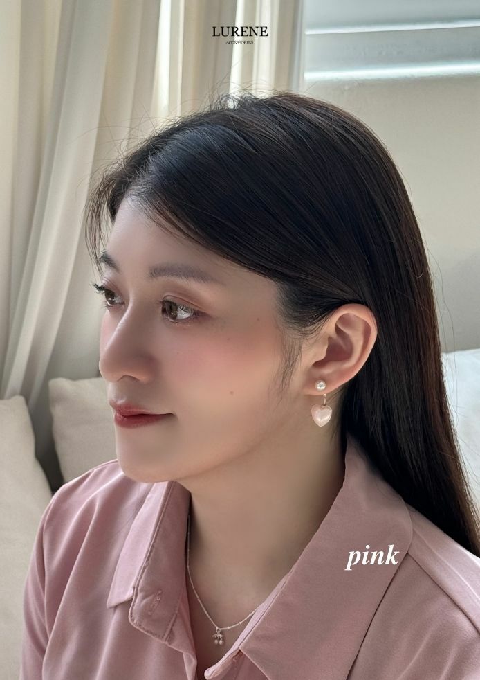 醫療鋼 Isabella閃貝光澤愛心珍珠耳環 2色