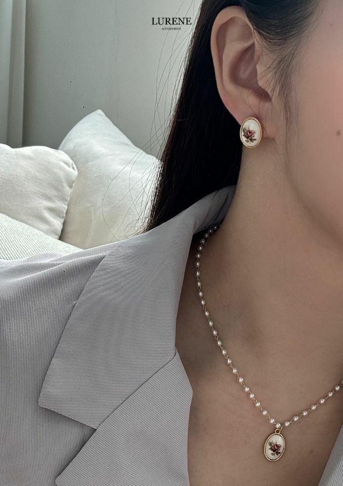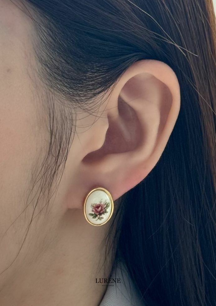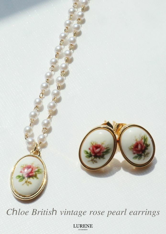 醫療鋼 Chloe英式復古玫瑰珍珠耳環