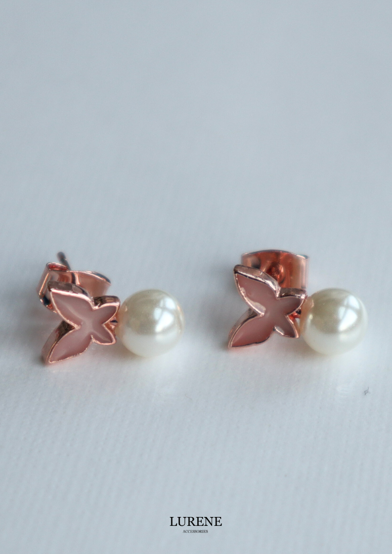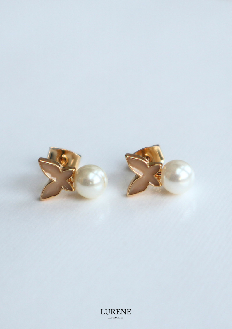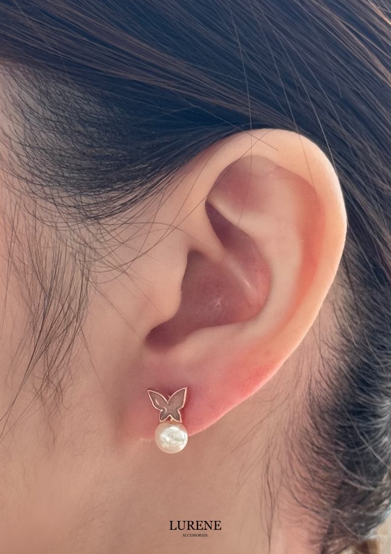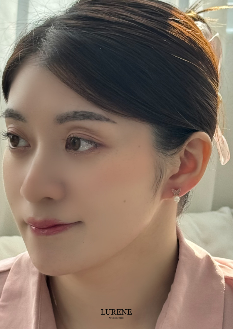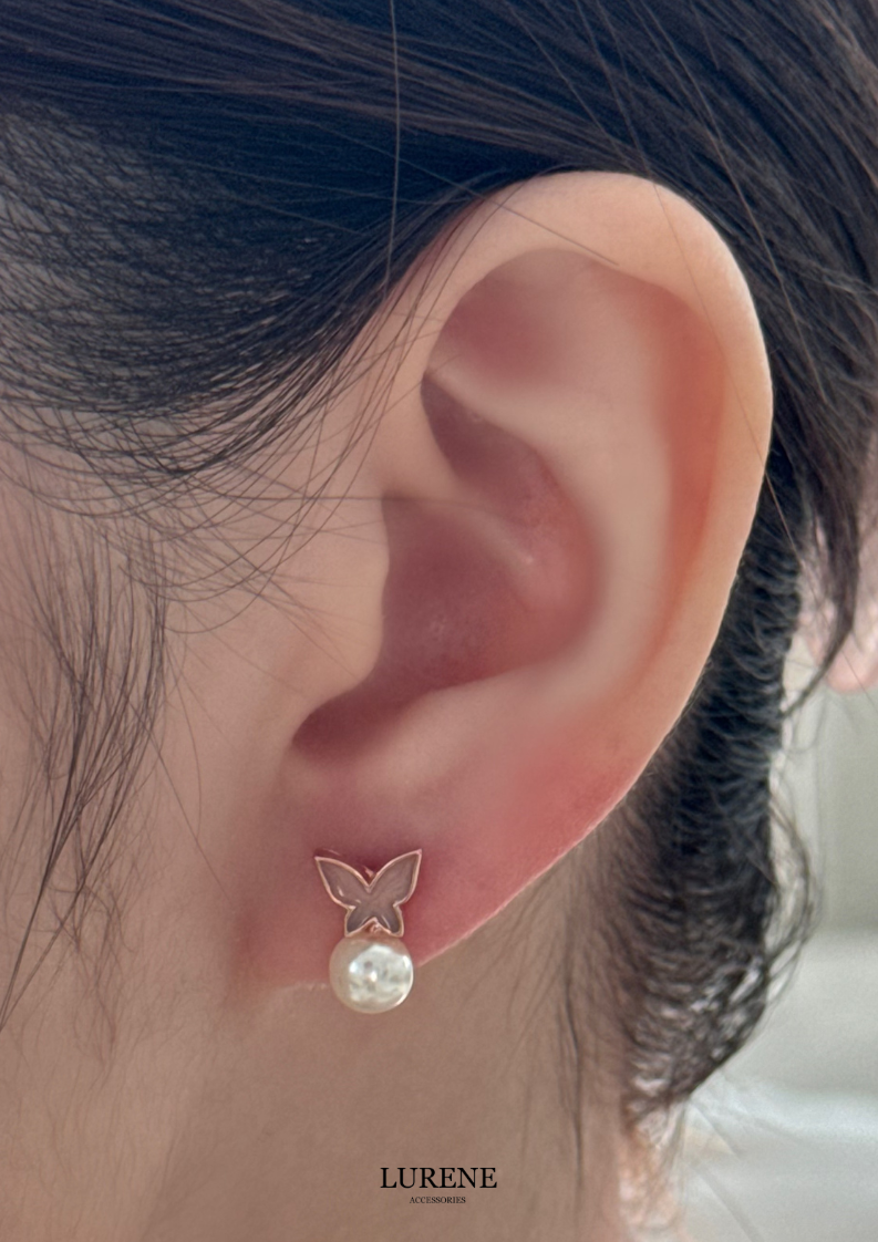 醫療鋼 蝶舞珍珠耳環 2色