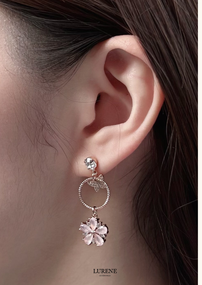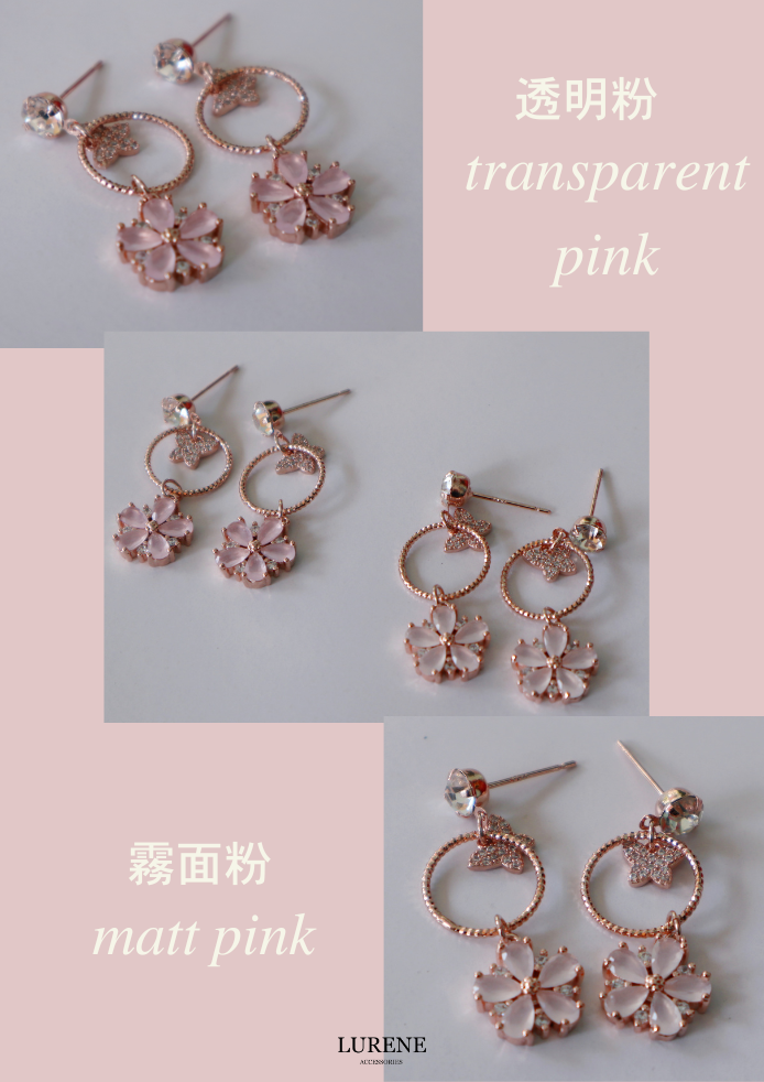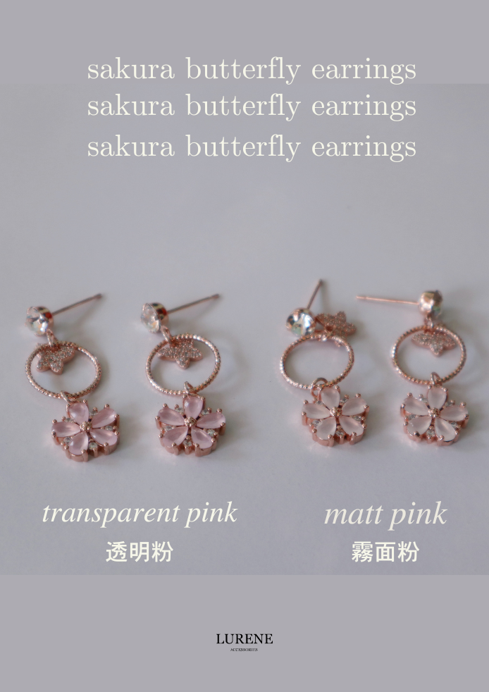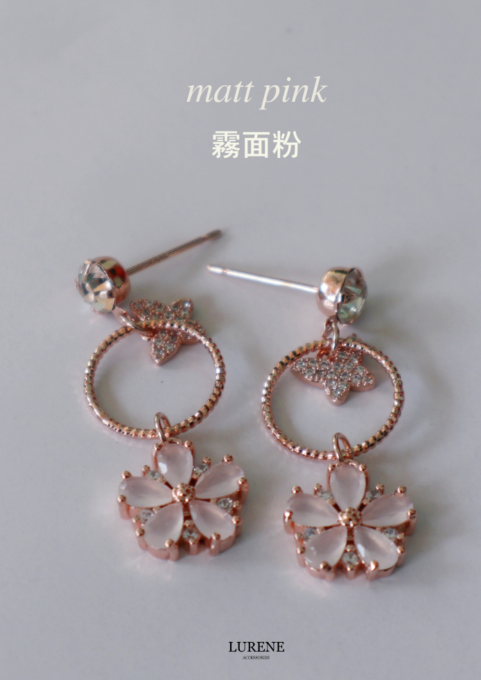 醫療鋼 銀春花蝴蝶吊墜耳環 2色